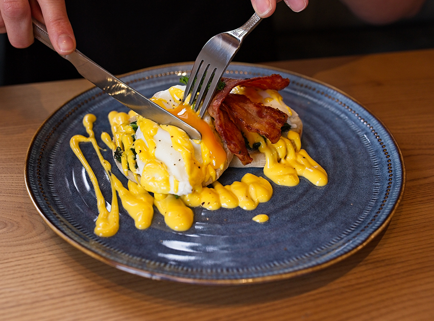 Poached eggs on English muffins or potato herb rosti with spinach & hollandaise sauce.